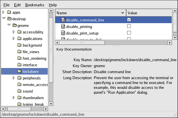 Figure 4-6. Setting the disable_command_line GConf Key
